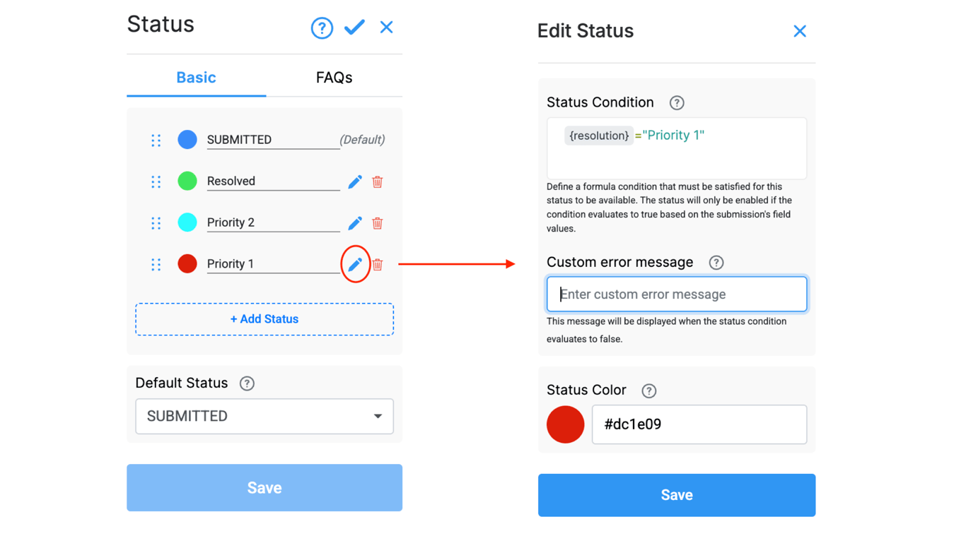 You can now add a custom error message for status conditions. If the condition is not met and someone tries to apply that status, your message will be shown explaining why the status change is not allowed. Click here to know more.