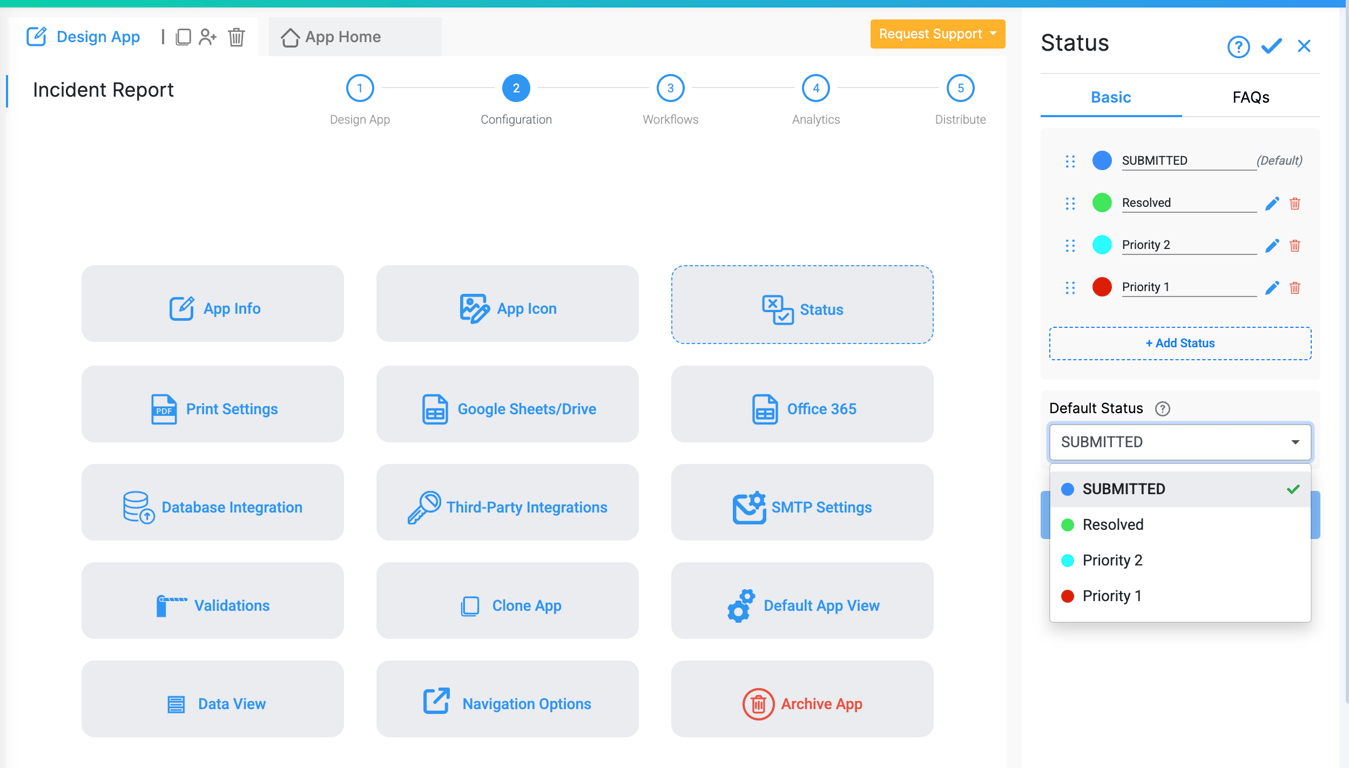You can now choose a default status that is automatically applied to every new submission. This removes the need to run a workflow just to set the initial status after submission. Click here to know more.