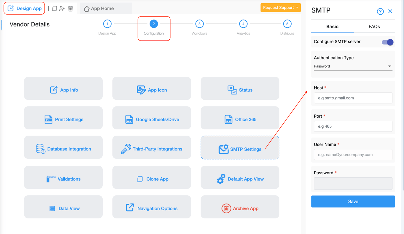 Alongside workplace-level SMTP, you can now configure SMTP at the app level. This allows a specific app to send emails from a different email ID than the workplace default or no-reply address.