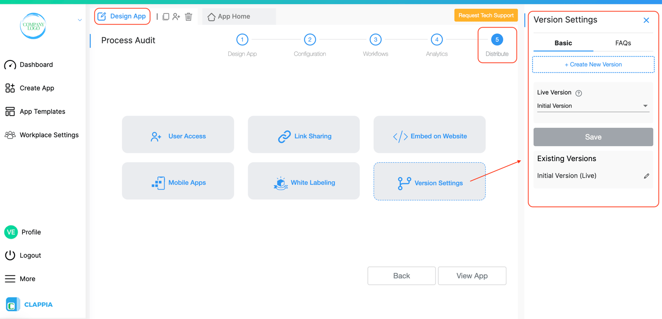 Clappia’s App Versioning allows you to create multiple versions of an app for testing new changes without affecting the live version. App admins can edit app fields and configurations like workflows, charts, reports, and more in non-live versions, ensuring all updates are thoroughly tested before being made live for end users. This feature ensures smooth transitions and uninterrupted app usage for end-users while allowing admins to test and refine changes in the background.