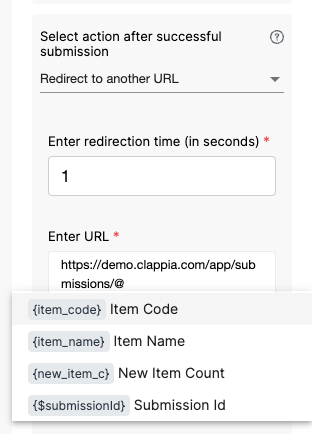 You can now use field variables (@ variables) in the redirect URL settings of the submit button to dynamically redirect users based on their on their submission data. Insert the relevant @ variables to create personalised redirections after successful submissions.