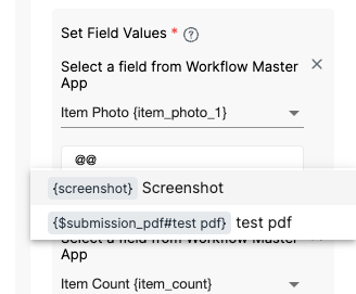 You can now configure the Create/ Edit submission workflow nodes to automatically send submission PDFs to the 'Camera, image & Files' blocks in other apps. To enable this feature, make sure that a PDF has been configured for your submissions. This allows seamless document transfer between apps, ensuring that key submission data is readily available where it's needed. By setting up this workflow, you can store and organise submission PDFs efficiently across multiple apps.