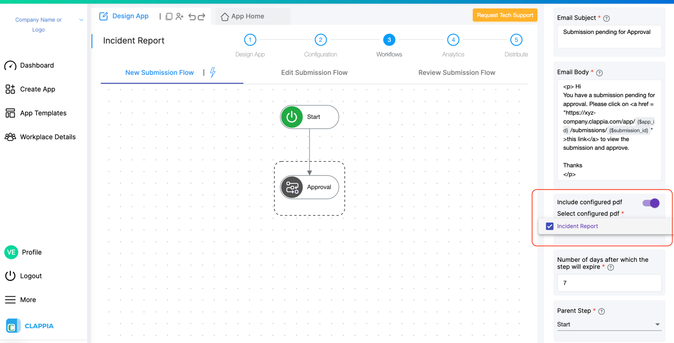 Attachments of dynamic PDFs are now supported within the Approval workflow node, provided that a print template has been configured for the app. These dynamic PDFs will be sent as email attachments during the workflow process.