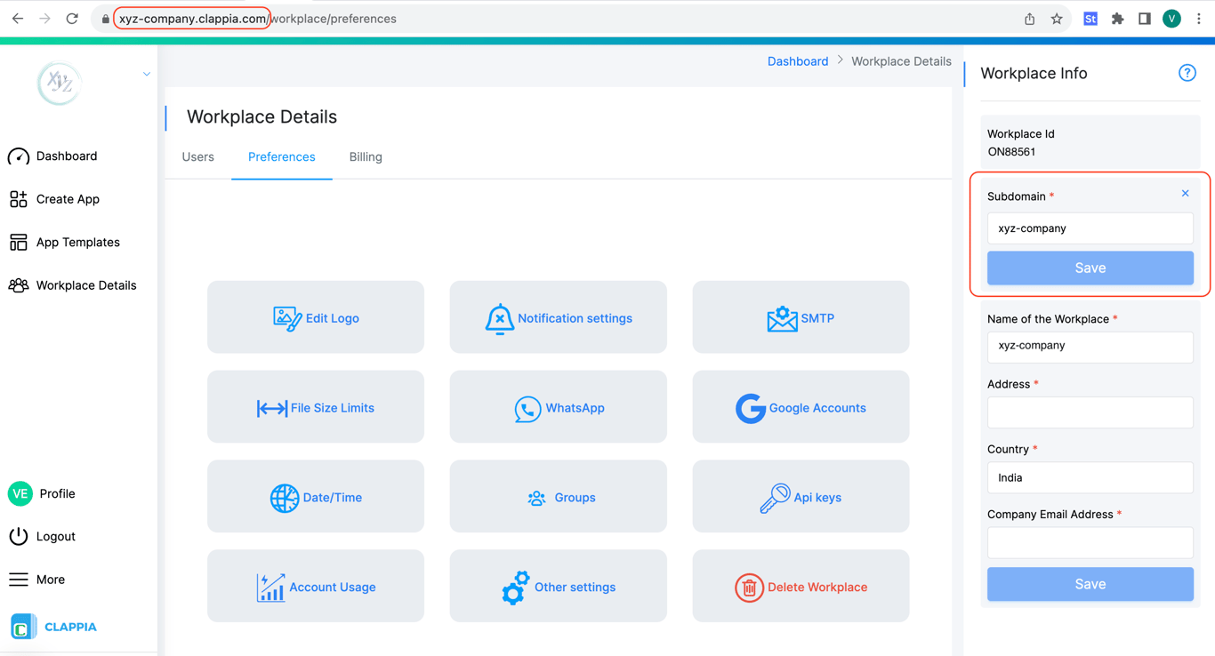 Admins now have the ability to change subdomains, ensuring a distinct online identity. Simply navigate to workplace settings to initiate the process, provided the desired subdomain is available.