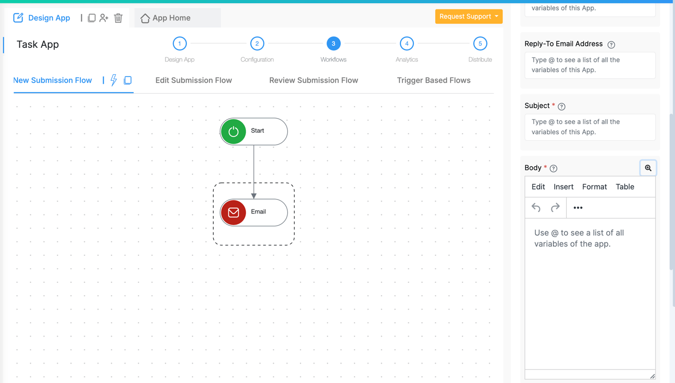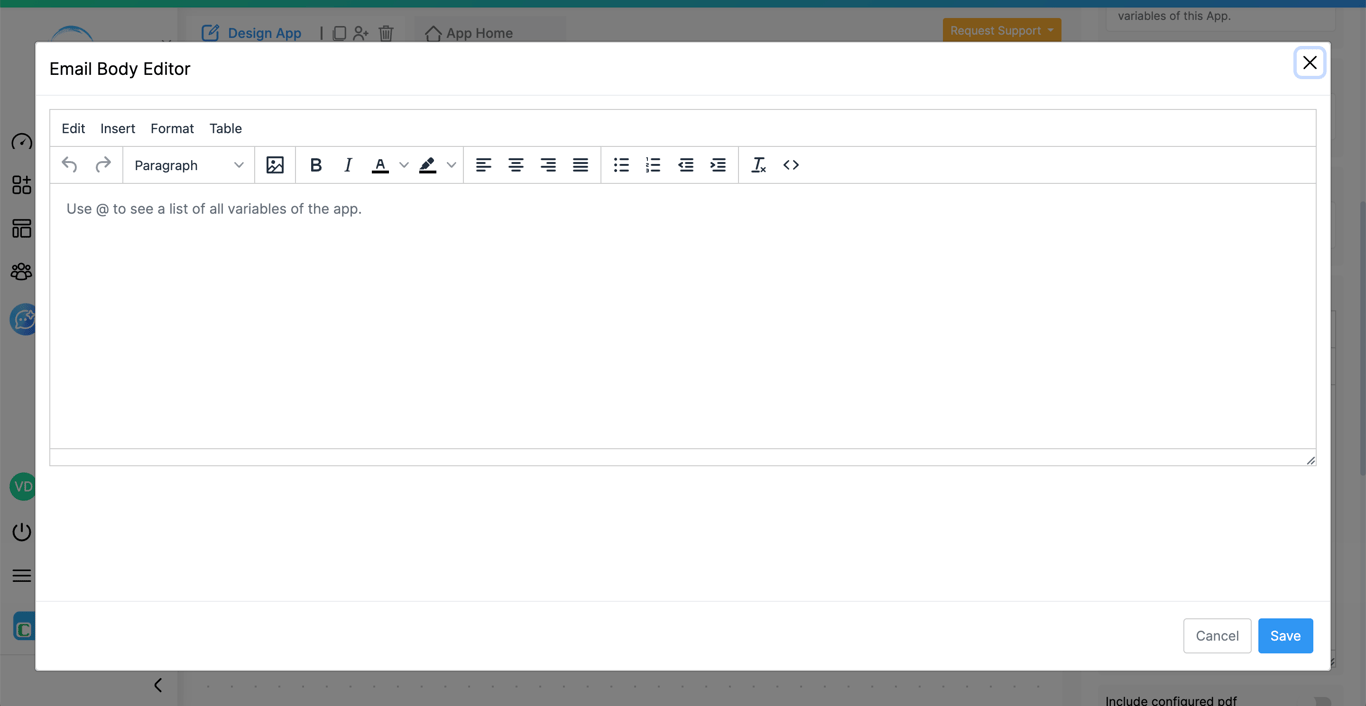 The email body editor in the email workflow can now be expanded into a larger view while configuring emails.