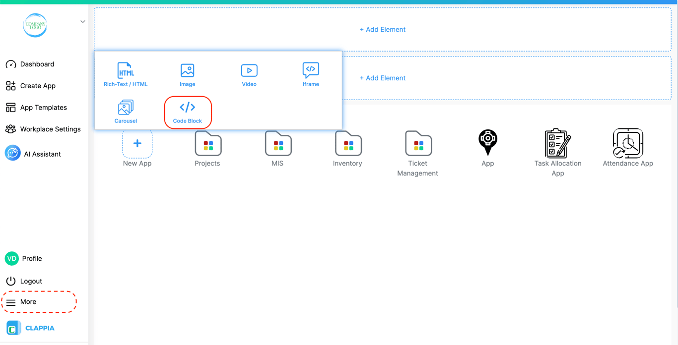 The Dashboard Design feature now supports a Code block. This can be used to build custom dashboard elements such as notices, announcements, or banners using code. The Code block can also reference workplace-level variables when workplace information needs to be displayed dynamically on dashboards. This feature is available on Premium plans. Click here to know more.