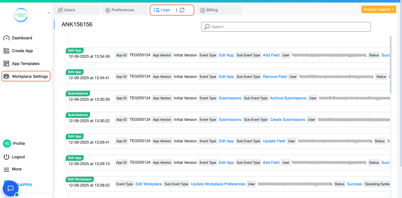 Workplace Logs have been enhanced to capture more administrative changes. Logs now include updates to user details such as password, role, groups, and attributes, as well as changes made under the Preferences tab in Workplace Settings. Billing-related changes are not included in workplace logs. This provides better visibility into key actions performed at the workplace level. Click here to know more.