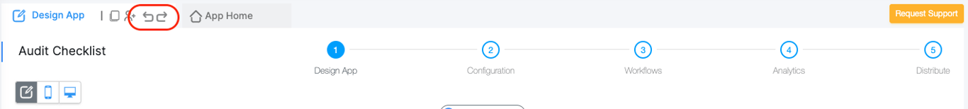 While editing the Apps, if you accidentally remove, modify, add or reorder some blocks or sections, you can now use the newly introduced Undo and Redo options on the Design App Tab to revert your changes.