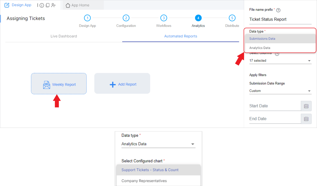 You can now include the Analytics (Pie Chart, Donut Chart, Data Table, Bar Chart, Line Chart) in the automated reports. The analytics data will be available to you in excel format. Read more.