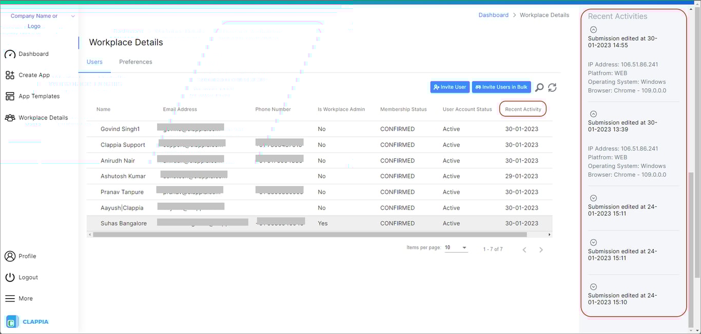Workplace Admins can now view the most recent activities of all users of their Workplace.